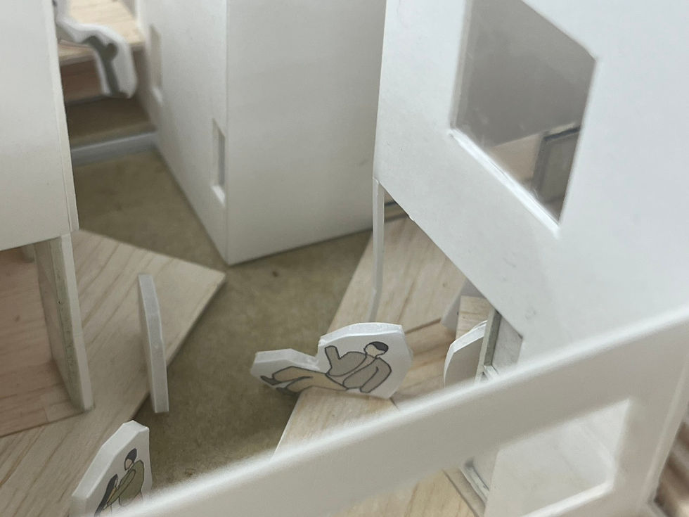 現代の空間では、家具や用途が行為を決めている。本計画は、家具と建築の境界をほどき、用途の定まらない余白をつくることで、人が「何をするか」を自ら選ぶ状態を生み出す。銭湯、シアター、シェアキッチン、そして喫煙所や本の貯蔵庫が重なり合い、時間は一つに定まらない。そこに立ち現れるのは、時間を選び生きるためのユートピアである。