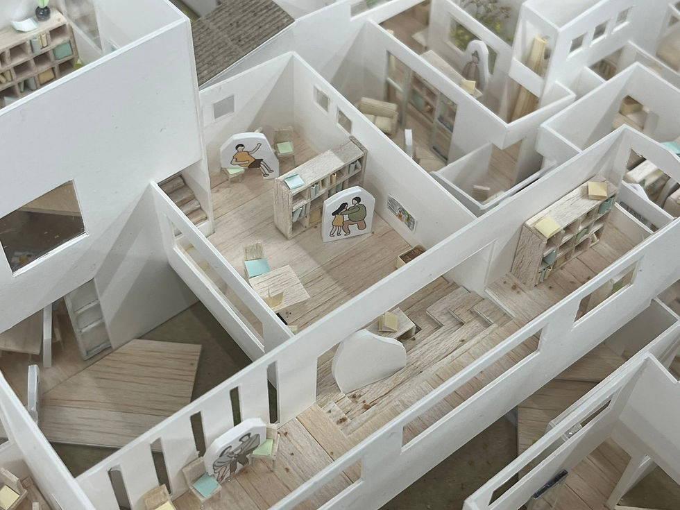 ここでは滞在・対話・ひとりの時間が共存し、訪れる人が自らの状態に応じて居場所を選ぶことができる。治療を目的とした施設ではなく、がんと共に生きる人々が生活の延長として過ごせる「もうひとつの家」として、都市の中にさりげなく関係の余白を生み出す建築を目指す。