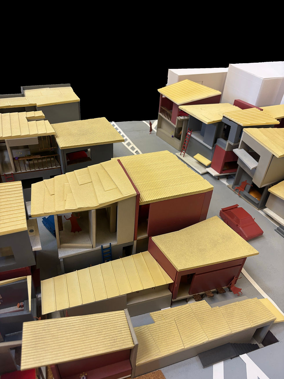 これは他者を知ってしまう路地で暮らす住宅街の設計である。現代社会では、年齢や職業、国籍、家族構成といった様々な属性によって人々が分類され、互いを十分に知ることなく理解したつもりになってしまう状況がある。このような無意識的なカテゴライズは、他者を単純な枠組みの中で捉えてしまうことで差別や偏見を生み出す一因となっている。この構造は建築や都市空間においても見られ、用途や機能によって整理された空間は、人々の生活や関係性をあらかじめ枠づけてしまう。本提案では、こうした状況に対し、生活行為が住まいの内部だけでなく路地へと溢れ出す環境に着目する。行動から空間の骨格を構想することで、人々が互いの生活の気配を感じながら関わり合う、他者を知ってしまう住宅街のあり方を提案する。